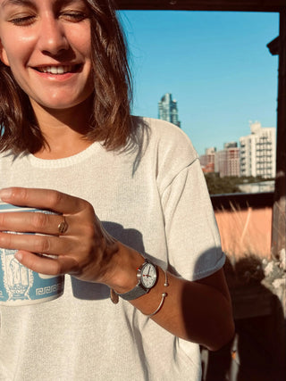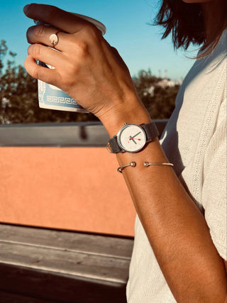 Mondaine watches are design icons that have successfully reinvented themselves in fresh, sustainable ways through materials that hold integrity to the style and essence of the brand. My Classic Mondaine watch is a discrete and elegant accessory for my everyday – whether it is a day at work or a more active outing while on vacation in France. The cork lining on the strap makes for a super comfortable wear, while the earthy tones of the textile and matte, tone-on-tone case look give the eye rest when checking on the time. Overall it feels like a timeless design object, natural and easy to wear every season of the year.