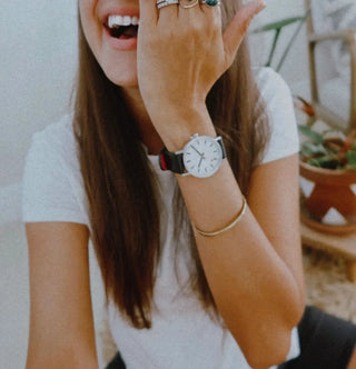 I try (keyword, try) to stay off my phone as much as possible. I love being able to look at my wrist to know what time it is rather than reaching into my bag to look at my phone screen. Also, I’m a huge advocate for kinder living. This means supporting brands that align with my beliefs. Mondaine’s grape leather watch straps are revolutionary. They’re plant-based and made with grape scraps (literal byproduct) from a wine vineyard. Not to mention, many of Mondaine’s watches are made with renewable resources. Their watches are produced by solar power, they don’t use sweatshops and they’ve been carbon neutral since 2020! I also enjoy telling people all of the above when they compliment me on my watch!