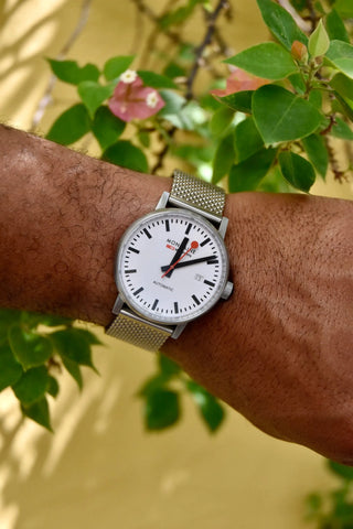One of my life rules is that a man should always wear a watch. Being on time is a high sign of respect for others and yourself. Mondaine makes my watch choice easy most days because of the clean design of the Railways is extremely universal.