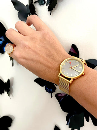 I was ready to get rid of my smart watch because I’m ready to get back to being intentional and less devoted to screens. When I was researching affordable and well made watches, Mondaine popped up and I stopped looking further. I love my new watch and feel more fashionable and focused on tasks at hand. I think it is a non-fussy and clean looking face, with pops of color that gives it a bit of extra style. My son has even said he wants one now and he’s 12. Thank you for making a product I can stand behind and wear during my crazy days.